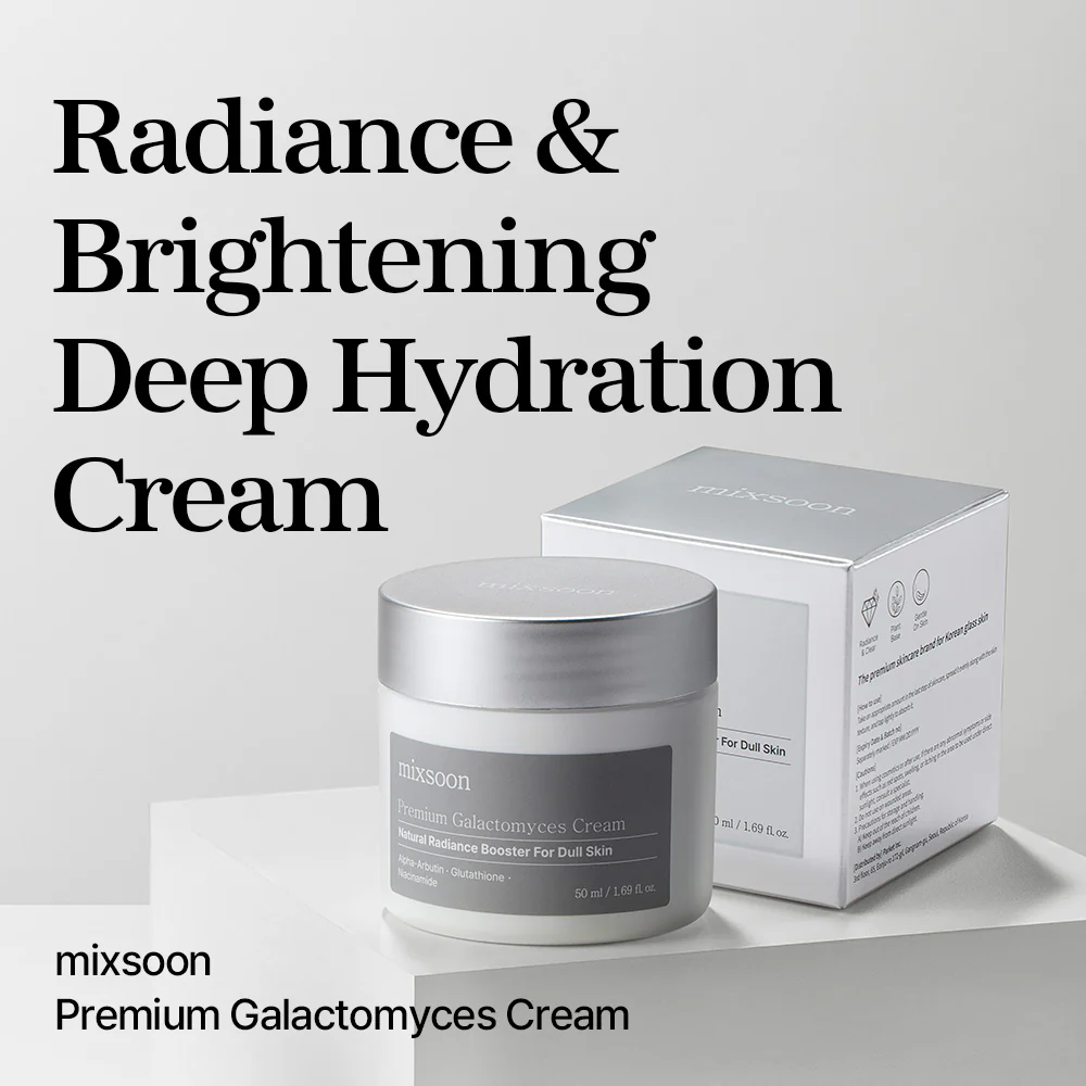 The mixsoon Premium Galactomyces Radiance Cream is a luxurious skin-brightening solution designed to restore clarity, vitality, and radiance to dull or uneven skin. Formulated with the advanced Quad-Complex of Galactomyces, Glutathione, Alpha-Arbutin, and Niacinamide, this cream works synergistically to refine skin texture, improve elasticity, and visibly reduce dark spots and discoloration. Enriched with plant-based moisturizers such as Squalane, Macadamia Seed Oil, and Shea Butter, the cream provides deep, long-lasting hydration while reinforcing the skin barrier for a smooth, supple finish. Its innovative “liquid crystal” structure mimics the natural composition of human skin, allowing for better absorption and a lightweight yet nourishing texture. Perfect for all skin types, this fragrance-free formula revitalizes the complexion, evens out tone, and delivers a natural glow—without the artificial sheen of makeup. With consistent use, it reveals skin that looks clearer, brighter, and healthier from within.